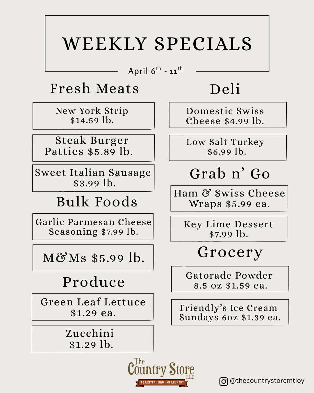 Please note that all specials are while supplies last.